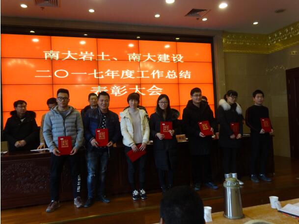 南大巖土、南大建設于2018年2月10日上午9:00在南京市華江飯店民國樓V288會議室召開了2017年度總結表彰大會。公司高層領導李俊才,葉繼權,尚明,張志鋮,李友生出席了會議,大會由公司副總經理張志鋮主持。